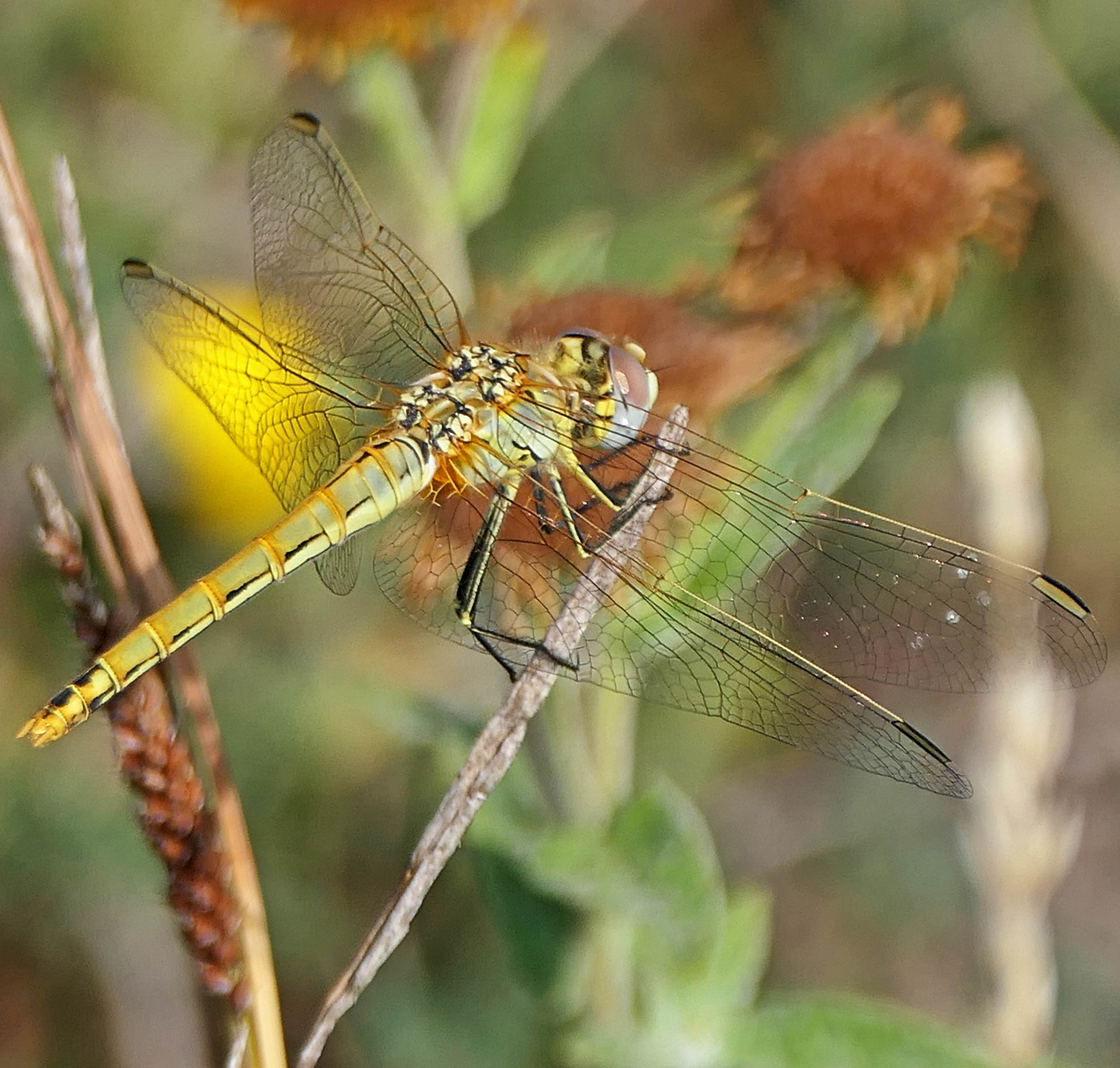 Named for the colour of the male’s attributes but the female/immature Red-veined darter (Sympetrum fonscolombii) is a glorious golden colour.