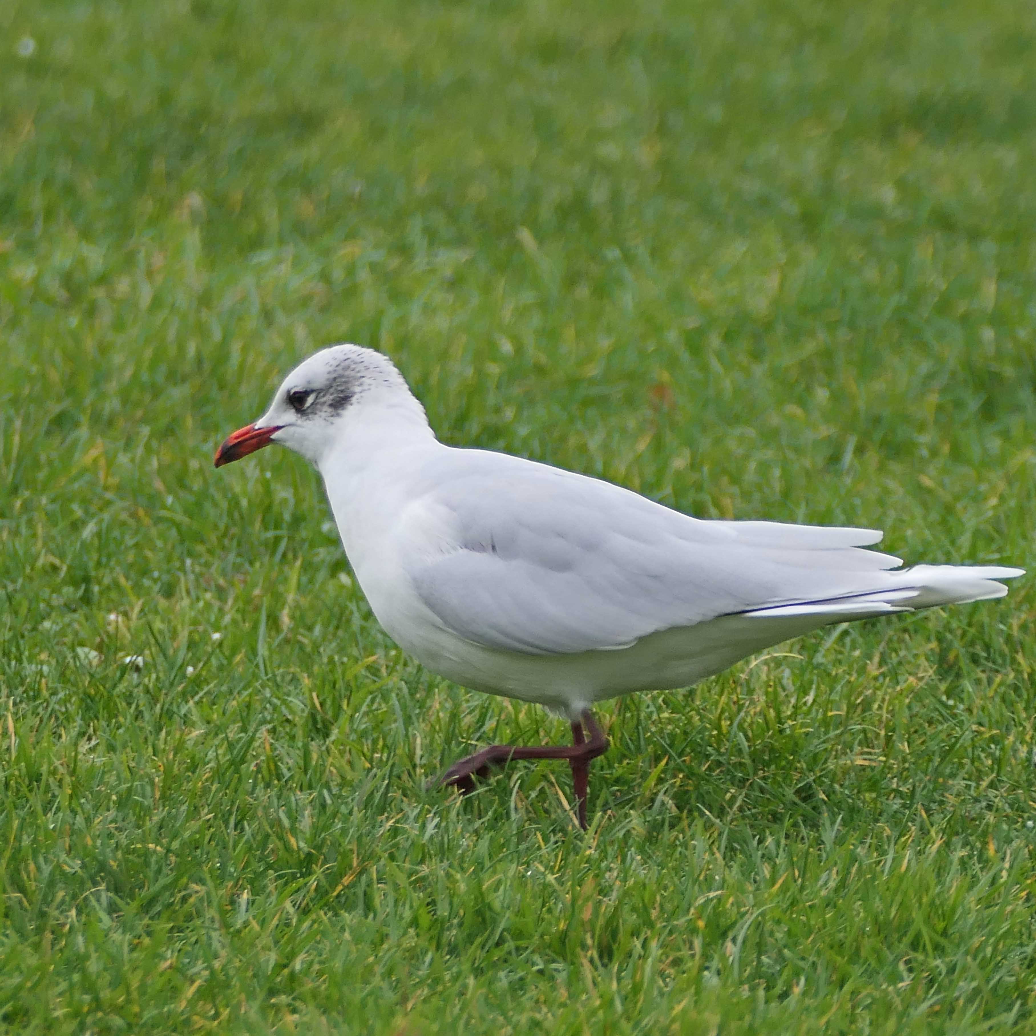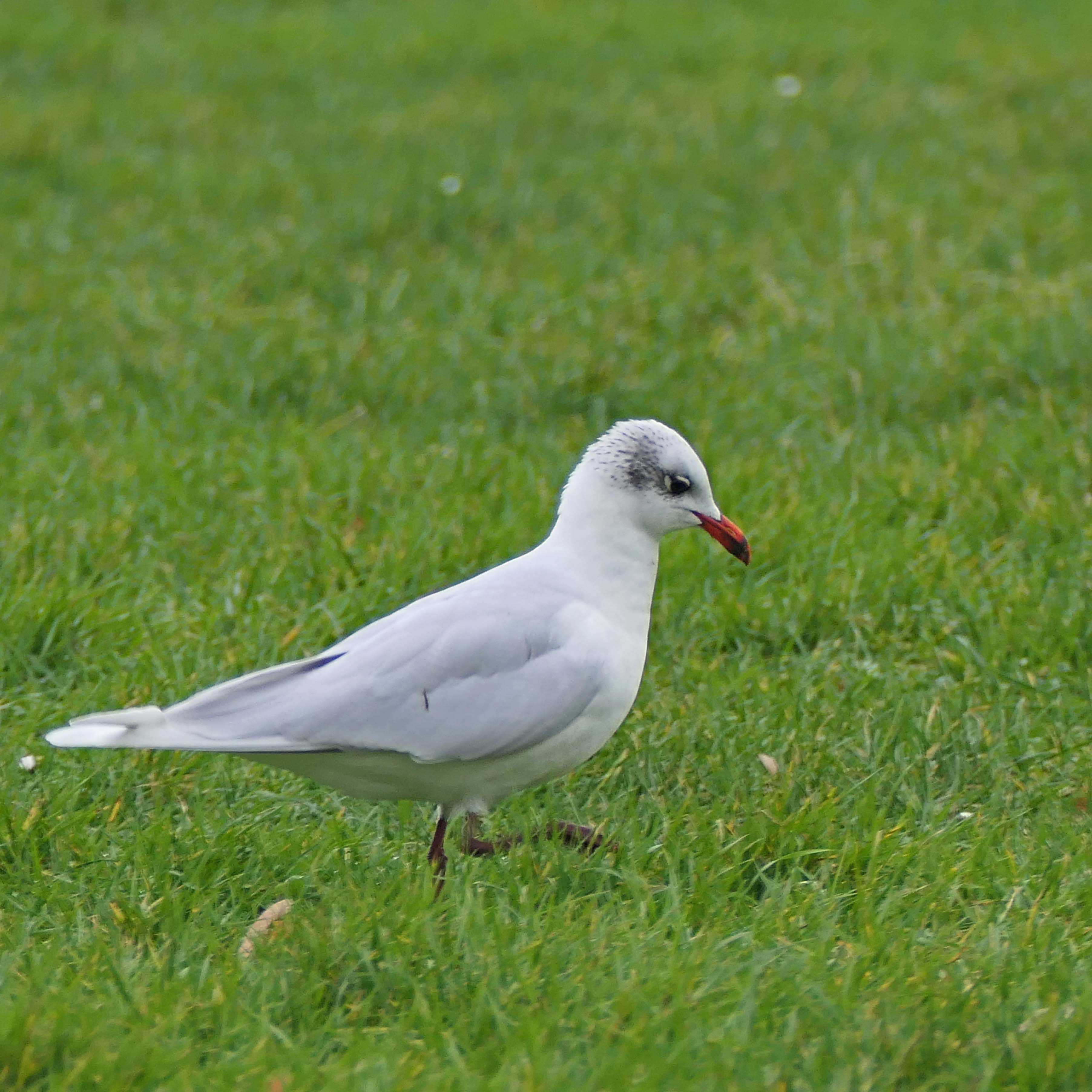 And there’s one other factor that makes me think this is the same Med gull – it is a very confiding bird, so confident, in fact, that it’s always the closest amongst the flock of other gulls to any humans and the path around the park, which means you can sit on a park bench and enjoy good views of it as it goes about its daily search for worms and other insects.