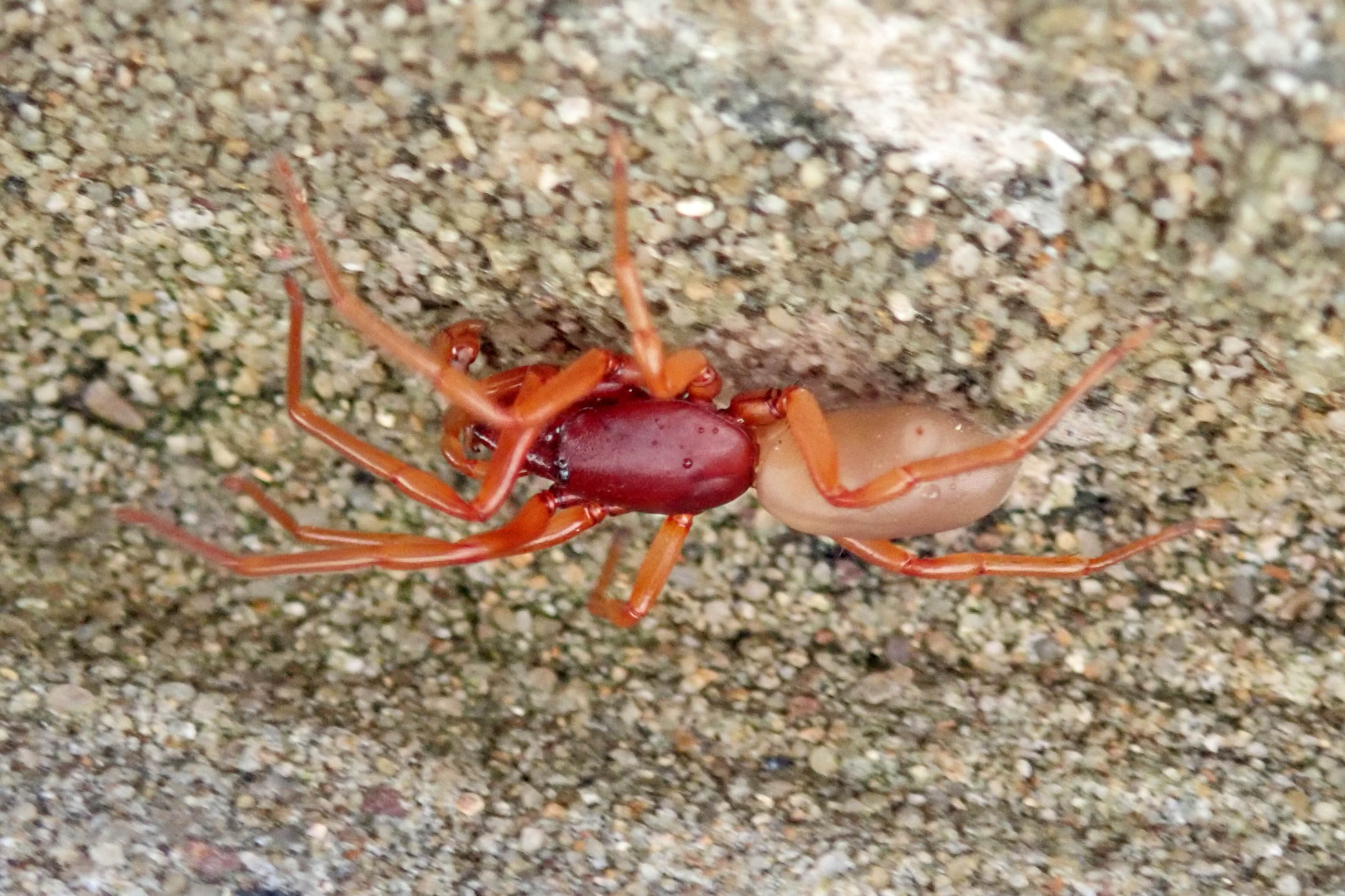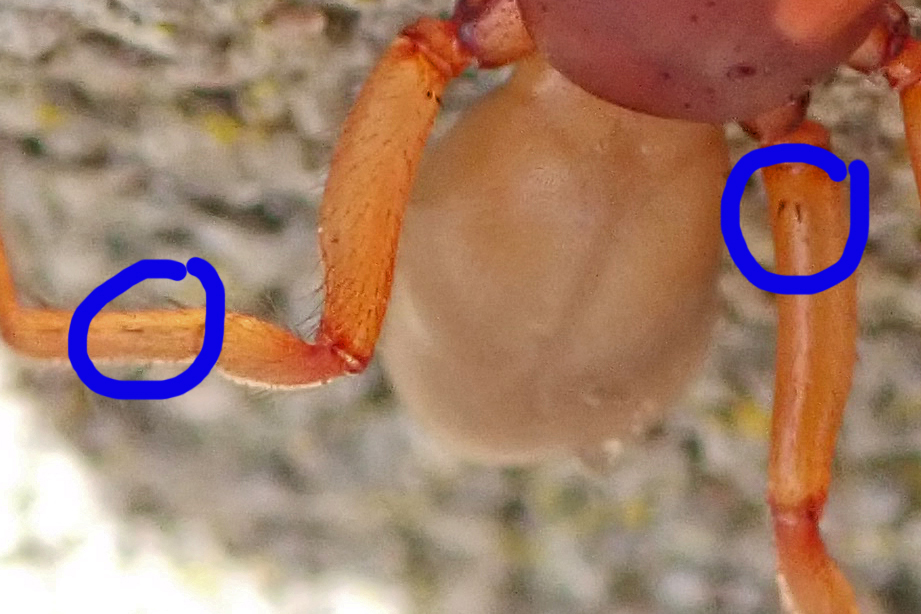 And I got my photos of a new-to-me spider species. Even better, the photos were good enough to distinguish which of the two Dysdera species this was. So, let me present Dysdera crocata, the Woodlouse spider, whose favourite prey is, unsurprisingly, Woodlice, and who can usually be found under stones or logs, or living in cracks in brick or stone walls.