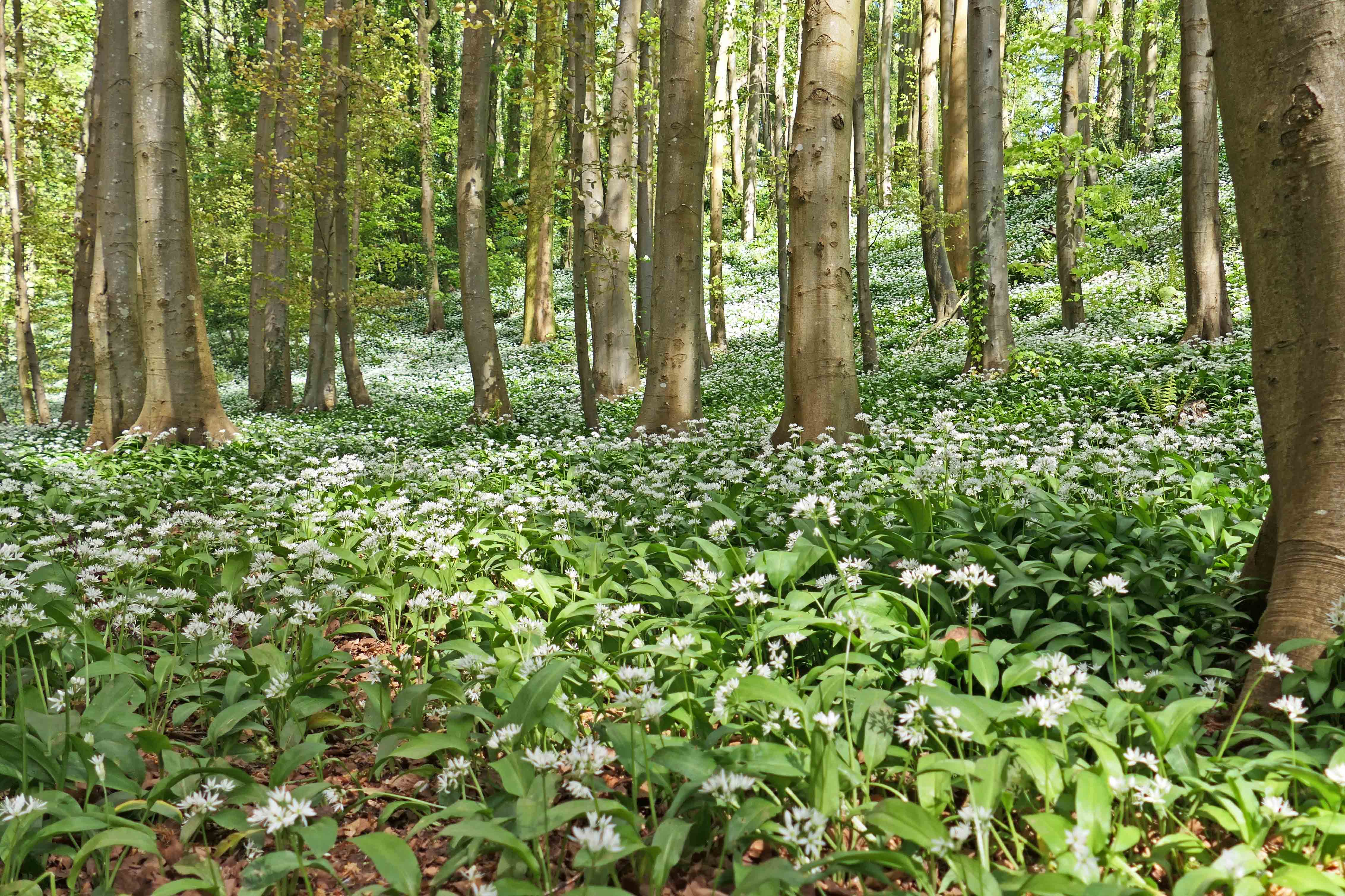 The lush green swathes of Wild garlic, with their abundant brilliant white flowers, looked so picturesque carpeting the earth beneath the towering Beech trees and garlanding the edges of the woodland pathways.