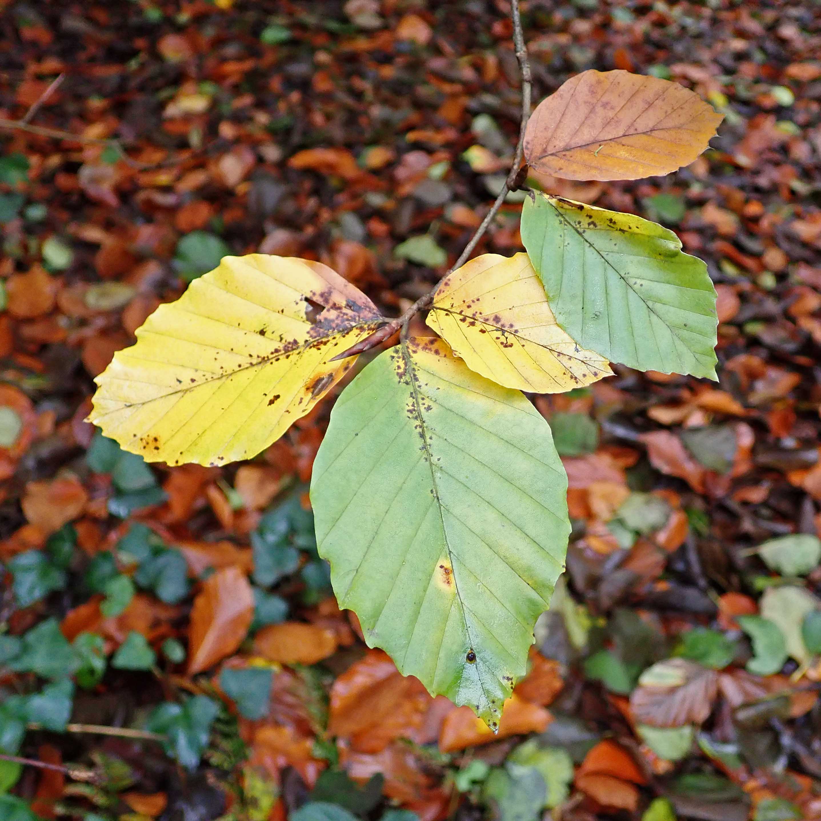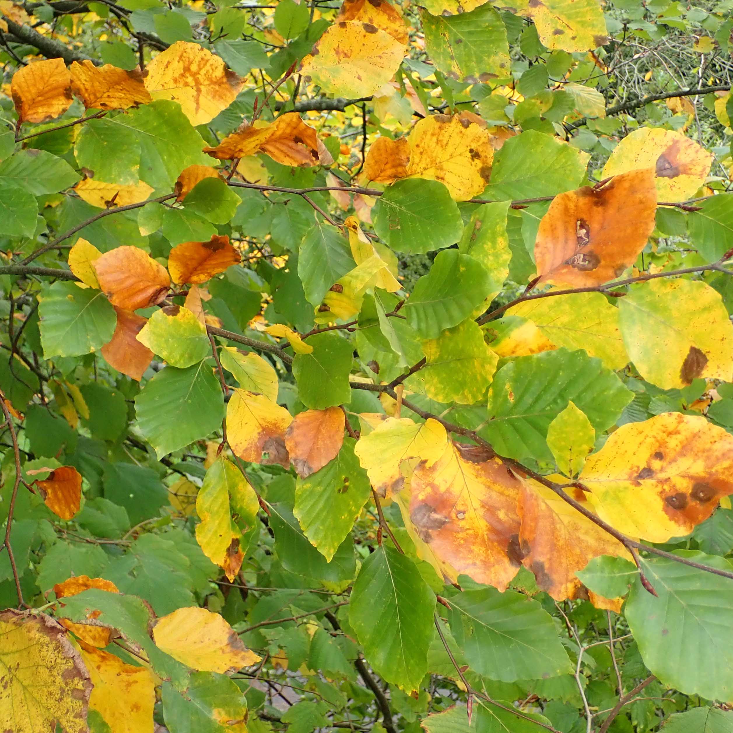 Whitebeam’s leaves are quite distinctive: elliptical in shape with serrated edges, the upper sides a shiny dark green, the under sides light grey and hairy. In the autumn, they aren’t particularly spectacular, simply changing to yellow, orange, and brown as they lose their chlorophyll.