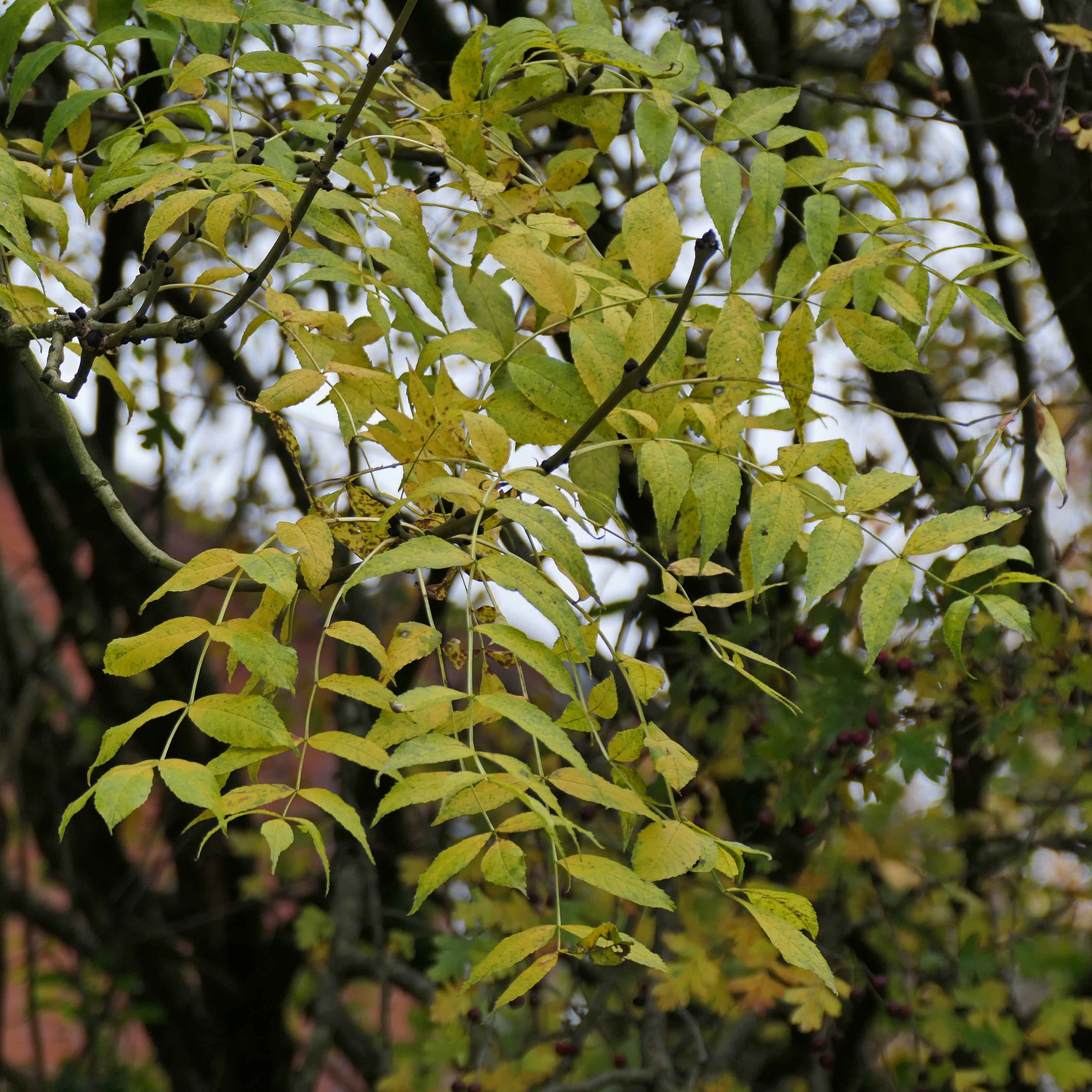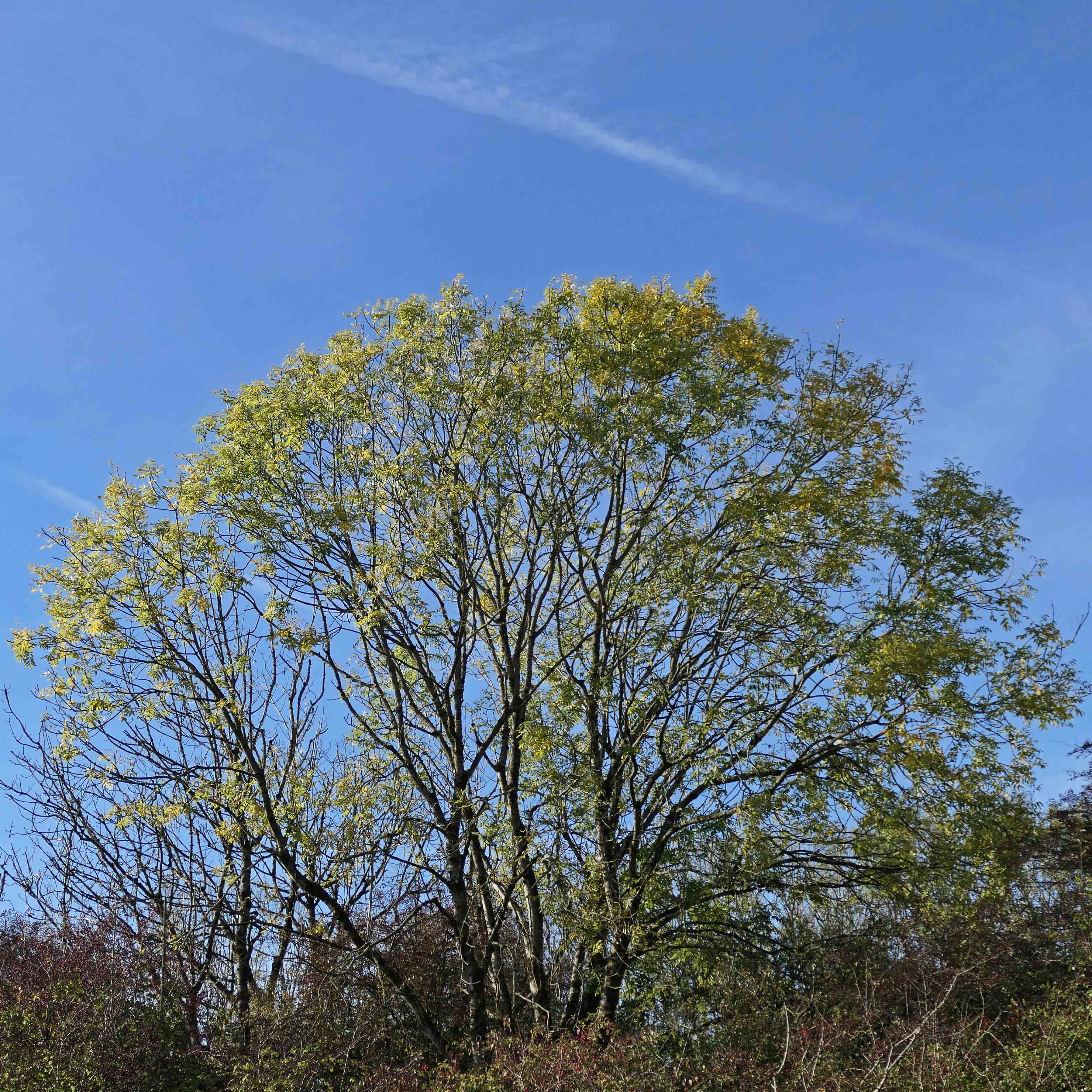 Whitebeam (Sorbus aria) is a tree I’ve overlooked until now, though I did take a few photos earlier in the year, of its smooth grey bark and its berries, before they ripened. (According to the Woodland Trust website, the berries ‘are known as chess apples in north-west England and are edible when nearly rotten’, which doesn’t make them sound very appetizing to me.)