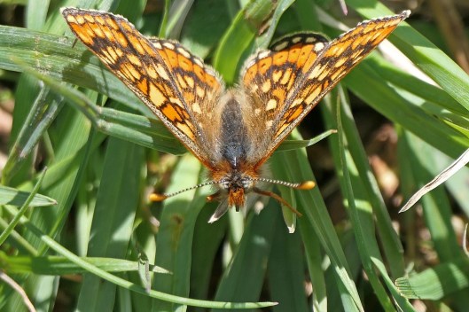 If this wasn’t gruesome enough for one morning’s finds, I then noticed a tiny wasp amongst the cocoons. At first, I thought it must be one of the Cotesia glomerata that had hatched, but no. When I checked at home later, a quick internet image search revealed that this did not resemble C. glomerata and, on Wikipedia, I found the information that C. glomerata is itself parasitised by a couple of other wasp species, Lysibia nana [it is listed as L. nanus in British taxonomic listings] and Gelis agilis. I’ve just been reading that the female G. agilis is wingless so I’m wondering if the wasp I saw is L. nanus. As this species is rarely recorded and there are no Welsh records, I’ve sent a query to the parasitic wasp expert at the Natural History Museum; I’ll update this post if/when I get an answer.