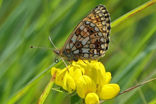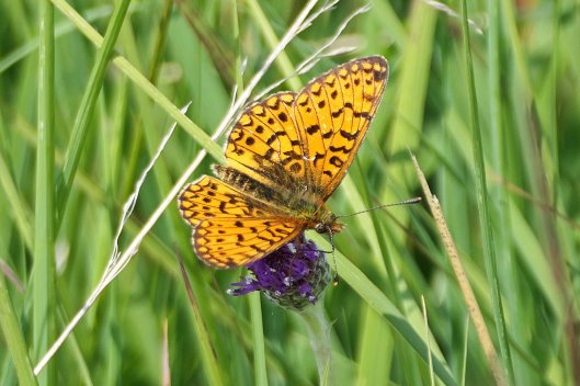 As usual, we were conducting our butterfly hunt in the habitat most favoured by these fritillaries, the damp grasslands of the Aberbargoed Grasslands National Nature Reserve, where the butterflies particularly enjoy flowers like common violets and bluebells, Marsh thistles and Ragged robin. The reserve is also home to a large population of orchids, both Common and Heath spotted-orchids, as well as Cross-leaved heath, Tormentil, Devil’s-bit scabious and Knapweed, amongst other wildflower species, making a wander around its fields a pleasure even when you don’t see very many butterflies.
