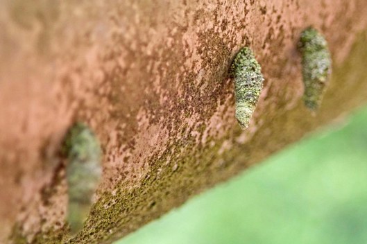 The location was unexpected: they are all living on the metal railings that run along one side of a path by the River Ely in Cardiff but the waterside location means the undersides of all those railings are covered in lichen and, fortunately, they’re never cleaned, so the bagworms have found the perfect place to live.